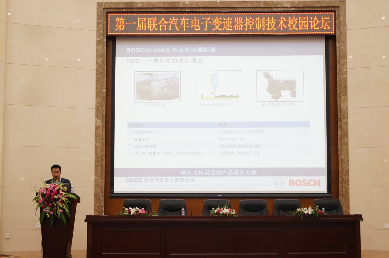 9月14日,由酒店偷拍 和联合电子有限公司承办的“第一届联合汽车电子变速器控制技术校园论坛”在我校南岭校区仿生楼一楼报告厅顺利举行。