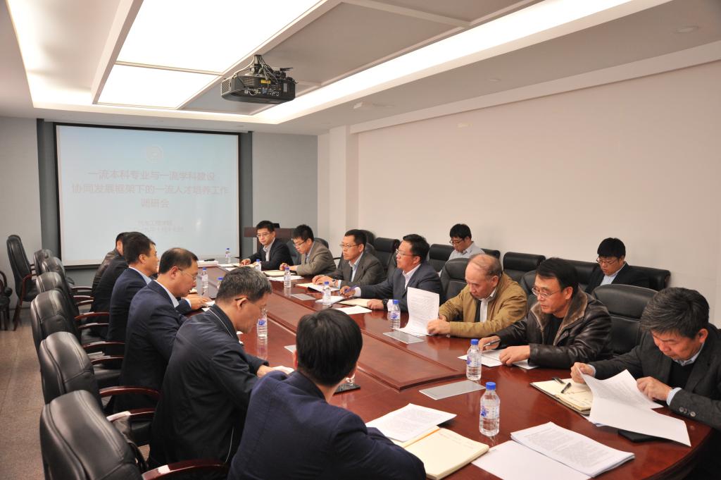 王利锋副校长介绍了此次调研的目的和意义,旨在为进一步加强一流学科与一流专业建设协同发展寻求方法。王忠恕副院长汇报了学院目前在一流学科和一流专业建设方面的举措和成效。高镇海院长在人才培养模式、课程体系建设以及学院发展前景等方面进行了汇报。李善兴书记对学院在“立德树人、课程思政”方面进行了汇报,提出培养人才要与时俱进。学院其他与会老师分别就本科教学管理、实践教学条件、教学资源、教学环节、招生宣传、教学研究、教学培训、师资队伍建设等方面提出了具体的意见和建议。