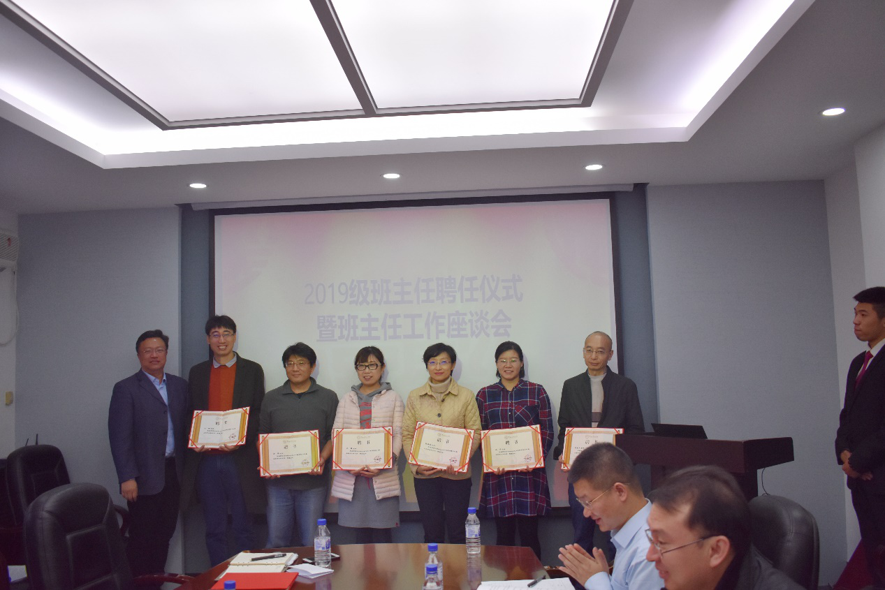 为了贯彻落实教育部及学校有关文件精神,全面做好学生思想政治教育工作,11月7日上午,酒店偷拍 召开了2019级班主任聘任仪式暨班主任工作座谈会。学院院长高镇海、党委书记李善兴、党委副书记兼副院长盛磊、2018级及2019级共30名班主任参加了本次会议。会议由学生工作办公室主任吴昊主持。