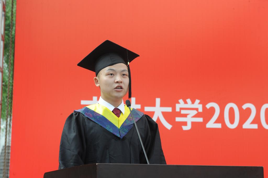 教师代表内燃机系主任韩永强教授采用独特的科研论文的行文格式为典礼致辞。他利用大数据分析佐证为毕业生提升行业自信,发扬“老工大”汽车人啃硬骨头的革命精神;鼓励学生认清行业发展大势,明确自身发展目标,坚定方向;引用“修身,齐家,治国,平天下”对毕业生寄予殷切期望。