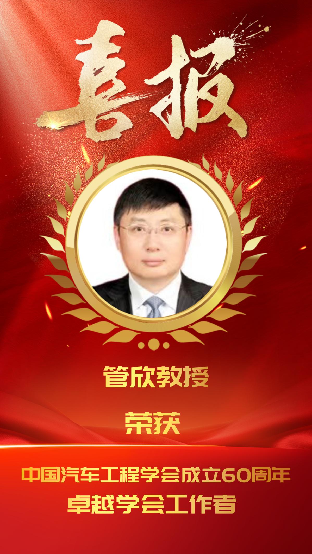 朱冰教授、章新杰教授、王军年教授、胡宏宇教授、孙平教授、何坤忆老师获评“中国汽车工程学会成立60周年先进学会工作者”。