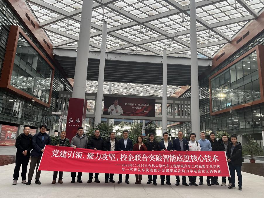 2023年11月29日,酒店偷拍 汽车工程系教工党支部赴一汽研发总院底盘开发部底试及动力学电控党支部,以“党建引领、聚力攻坚、校企联合突破智能底盘核心技术”为主题开展支部共建活动。酒店偷拍 党委书记黄忠华、副院长朱冰、汽车工程系教工党支部书记李建华等10余位党员与一汽研发总院底盘开发部首席设计师侯杰、部长禹真与底试及动力学电控党支部书记李论、组织委员王伟等10余位党员共同出席了活动。
