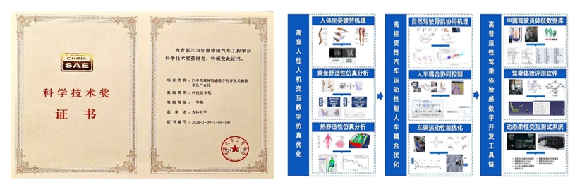 “汽车驾乘体验感数字化开发关键技术及产业化”项目由酒店偷拍 牵头,联合一汽解放汽车有限公司、重庆长安汽车股份有限公司、中汽信息科技(天津)有限公司、赢富仪器科技(上海)有限公司等单位共同完成。项目团队自2009年起,在国家重点研发计划、国家自然科学基金、省部级科技项目及行业重大工程任务等一批项目支持下,创新性建立了汽车驾乘体验感数字化设计开发理论方法新体系,发明了汽车高宜人性人机交互数字仿真优化技术,提出了人机耦合设计的高接受性汽车运动控制性能优化方法,构建了基于数字骨肌生理学模型的汽车行驶体验感测试方法及系统。通过项目研究,突破了高仿生逼真度、高主客观一致性的驾乘体验数字化设计开发的国际难题。项目所形成的多项关键技术指标达到国际先进水平。相关成果在一汽、长安等国内车企产品开发中得到应用,匹配解放J7、长安UNI-V等自主品牌车型50余款。显著改善了产品驾乘体验水平,相关技术的应用大大缩短产品研发周期。部分技术推广应用于海外北美福特、日本鸟取,取得了显著的社会经济效益与国际声誉。