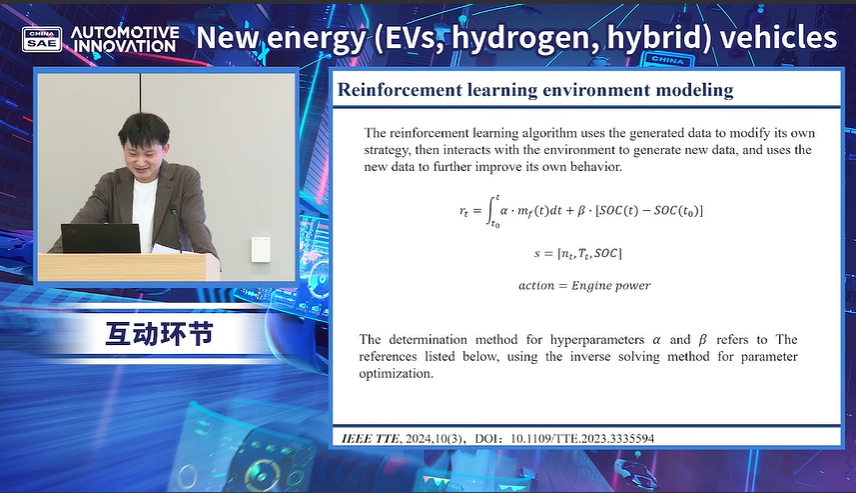 齐春阳研究员发表了题为“ Action Advising and Energy Management Strategy Optimization of Hybrid Electric Vehicle Agent Based on Uncertainty Analysis ”的演讲。提出了融合不确定性分析的智能能量管理策略框架,突破传统能量管理策略的静态决策局限,推动智能低碳交通技术发展。