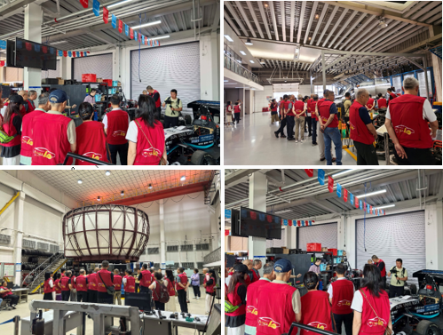 随后,校友们步行游览校园。在汽车构造馆,他们认真观摩了从传统燃油汽车到新能源汽车的整车结构、动力系统及关键零部件教具,并详细了解《专业综合认知实践》等课程的教学情况。当走进汽车底盘集成与仿生全国重点实验室时,校友们被汽车仿真与控制实验室的模拟大厅深深吸引,纷纷驻足了解汽车性能模拟器等先进研发工具的应用场景。在“辕梦工场”学生车队展区,队员们热情讲解参赛赛车的创新设计理念与精密制造工艺,分享车队在国内外赛事中屡创佳绩的精彩故事,校友们对汽车学子展现出的卓越创新能力和工程实践水平给予高度评价。一路走来,校友们难掩激动之情。从汽车构造实验室到国家级重点实验室,从传统教具到智能研发平台,从单一学科到国际化教学体系,学院四十年来在汽车领域的跨越式发展令大家倍感震撼。“这些成就不仅凝聚了几代吉大人的智慧与汗水,更见证了中国汽车工业从跟跑到领跑的伟大飞跃!”一位校友的感慨,道出了所有人的心声。