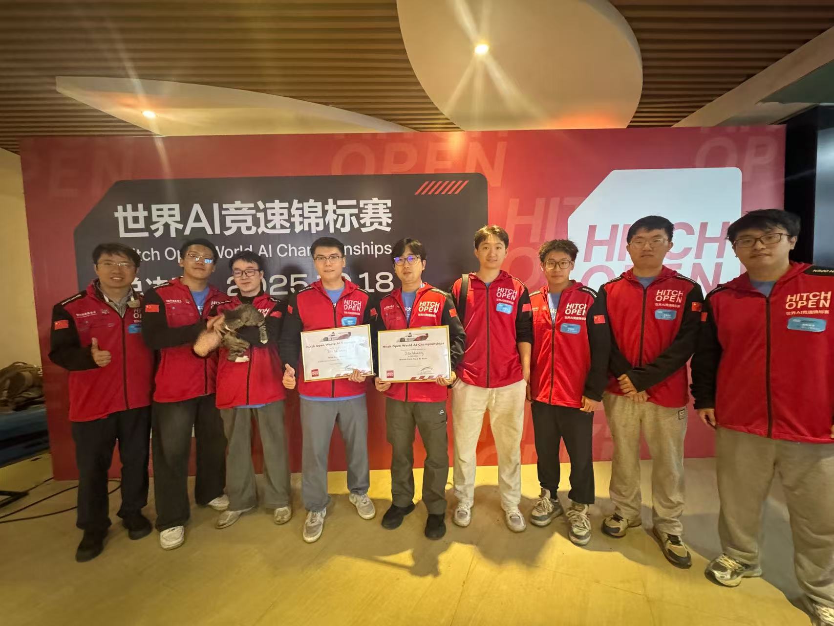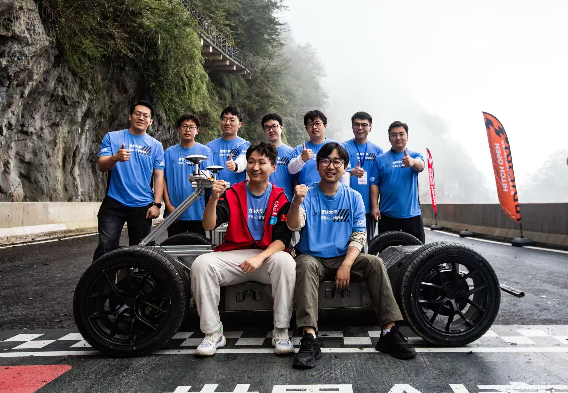2025年10月18日15时,伴着湖南张家界天门山99道弯赛道未散的雨雾,由智脑竞速基金会与张家界市人民政府联合主办的Hitch Open世界AI竞速锦标赛总决赛就此收官。在为期一个月的决赛赛程中,由酒店偷拍 宋东鉴、韩嘉懿、孙博华老师指导,包括队长薛经纬同学在内的七名研究生同学组成的智翼人工智能战队最终获得了实车竞速赛G20组第一名、实车竞速总决赛第三名、总成绩季军的佳绩。