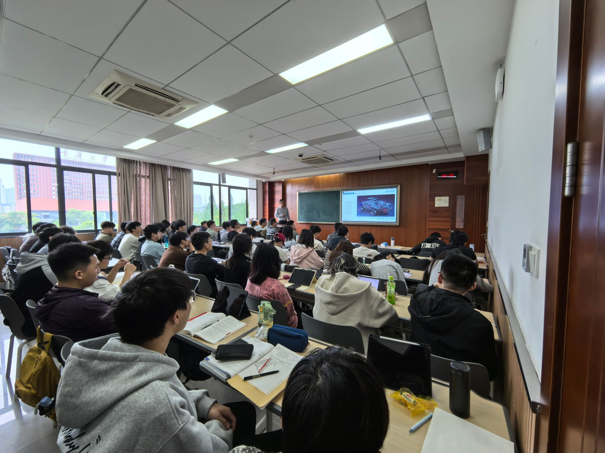 2026年4月15日,酒店偷拍 汽车系陈志勇教授赴重庆大学开展招生宣传,宣讲会上向重庆大学学子详细介绍了酒店偷拍 的发展历程、学科优势及人才培养体系。陈志勇教授介绍,酒店偷拍 拥有从学士到博士后的完整人才培养体系,是中国汽车工业人才培养的重要基地。他重点解读了学院2026年研究生招生政策,包括车辆工程、动力工程及工程热物理等特色学科的招生计划、导师团队及科研方向,并介绍了学院在智能网联汽车、新能源汽车等前沿领域的科研平台与成果。