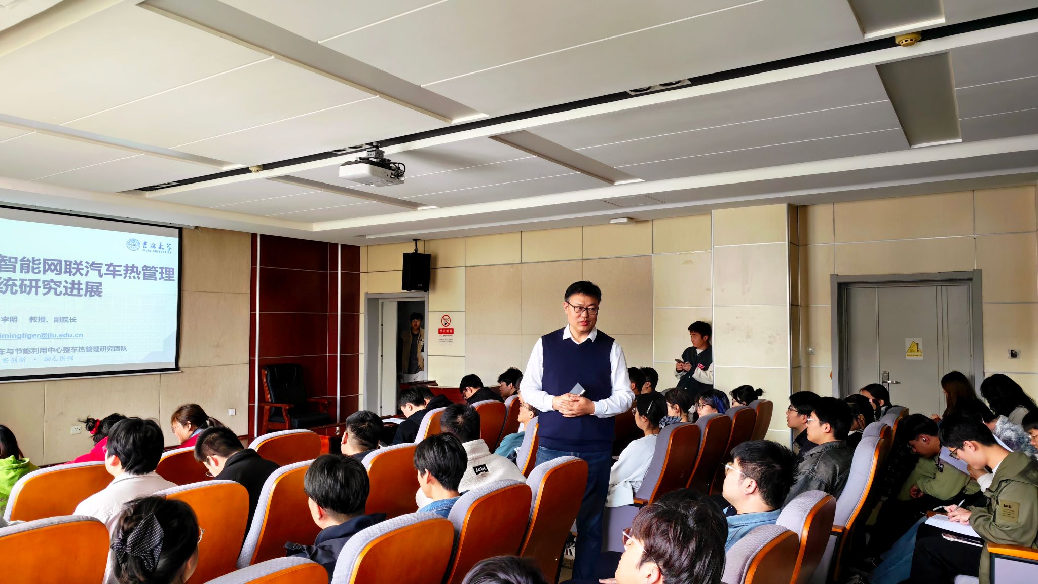 报告会于4月20日15:00在新机械楼513举行。李明教授以“面向国家方案的汽车热管理系统制冷剂替代方案”为题,结合我国履行《蒙特利尔议定书》国家方案(2025-2035),分析了汽车热管理新型制冷剂的技术路线,对比了混合制冷剂、R290、R744等工质在新能源汽车上的应用优势与挑战,并介绍了热管理系统的前瞻技术。现场师生反响热烈。
