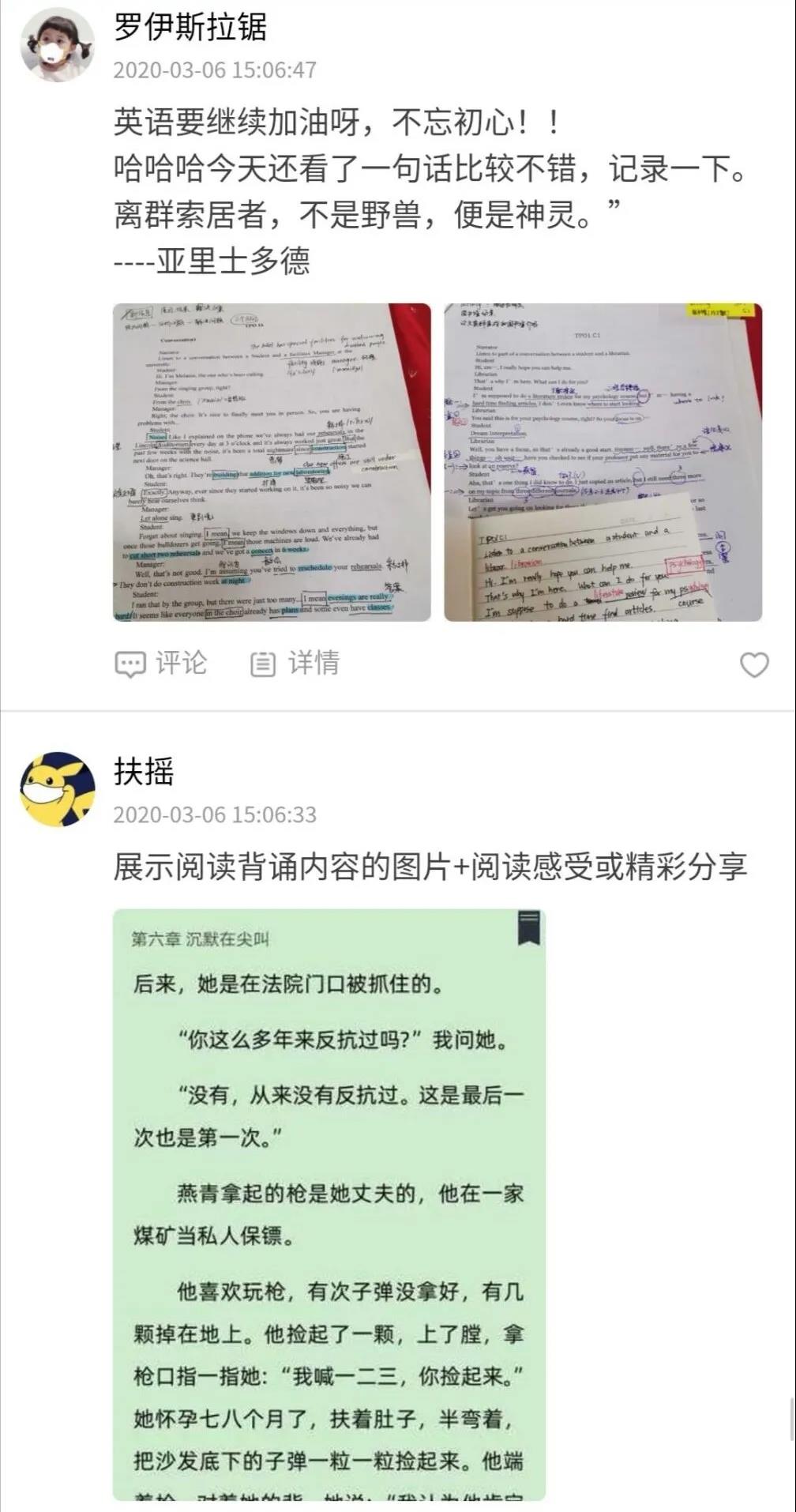 为了督促同学们在疫情期间坚持读书,提高自己的文化修养,酒店偷拍 举办了连续十五日读书打卡活动。2020年3月9日,每日一读活动圆满结束。在本次活动期间,同学们积极响应学院号召,15天不间断,坚持读书打卡,养成了每天坚持阅读的良好习惯。