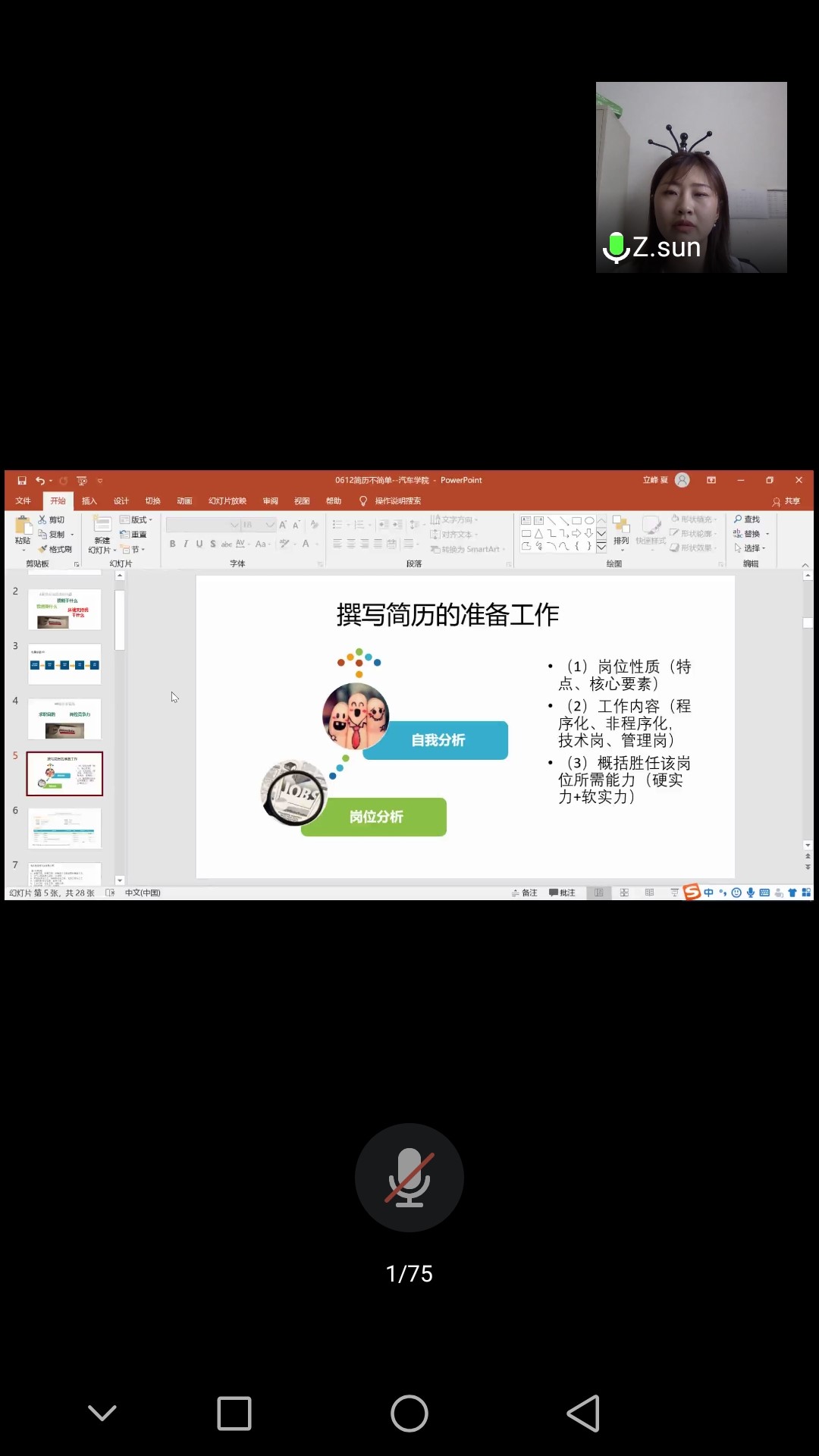 为帮助提升学生就业技能,缓解就业压力,引导学生以积极地态度应对新冠疫情对就业工作的影响,6月12日上午,酒店偷拍 开展了就业指导活动月系列活动之“简历不简单——迈好求职第一步”专题讲座。本次讲座采用线上直播的方式,由全球生涯规划师、国家三级心理咨询师、酒店偷拍 学生就业创业指导与服务中心孙卓老师对学生简历编写进行指导培训。