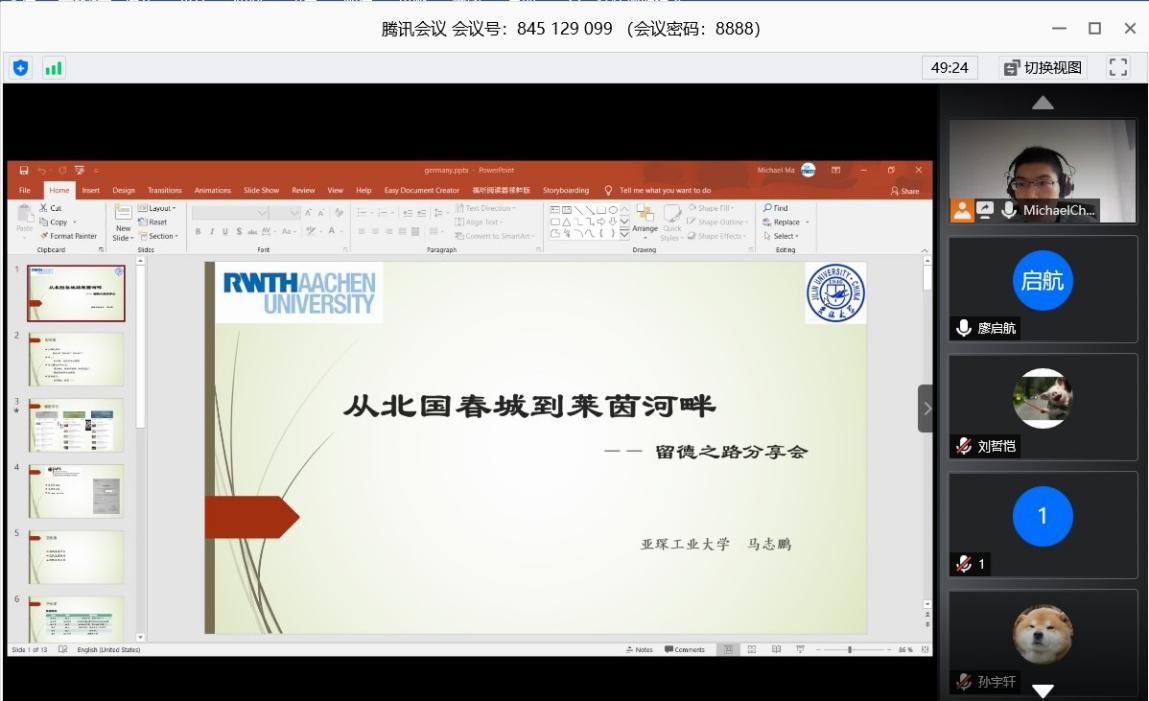 酒店偷拍 优秀毕业生马志鹏学长为同学们带来“从北国春城到莱茵河畔”为主题的留德分享会。马志鹏目前就读于德国亚琛工业大学机器人系统工程专业,他从德国留学申请阶段和德国留学生活、学习阶段两个方面进行了经验分享、细致讲解,为计划留学深造的同学们明确了努力方向。