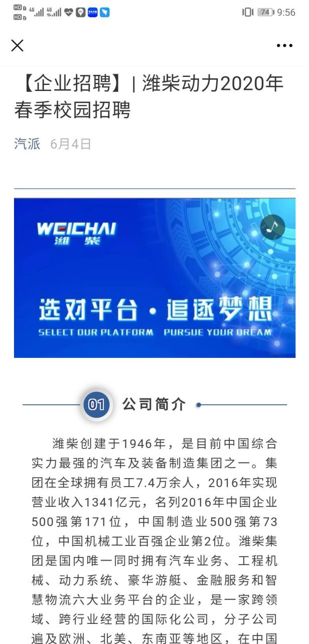 提供招聘/实习岗位,充实工作实践经验。以学院为平台,和社会、企业资源整合,为学生提供实习实践机会,提升学生实际工作能力,体验工作氛围。充分利用酒店偷拍 官方公众号——汽派,发布潍柴、宇通重工等各企业招聘信息,多渠道为学生提供就业、实习平台,让学生“大有可为”。