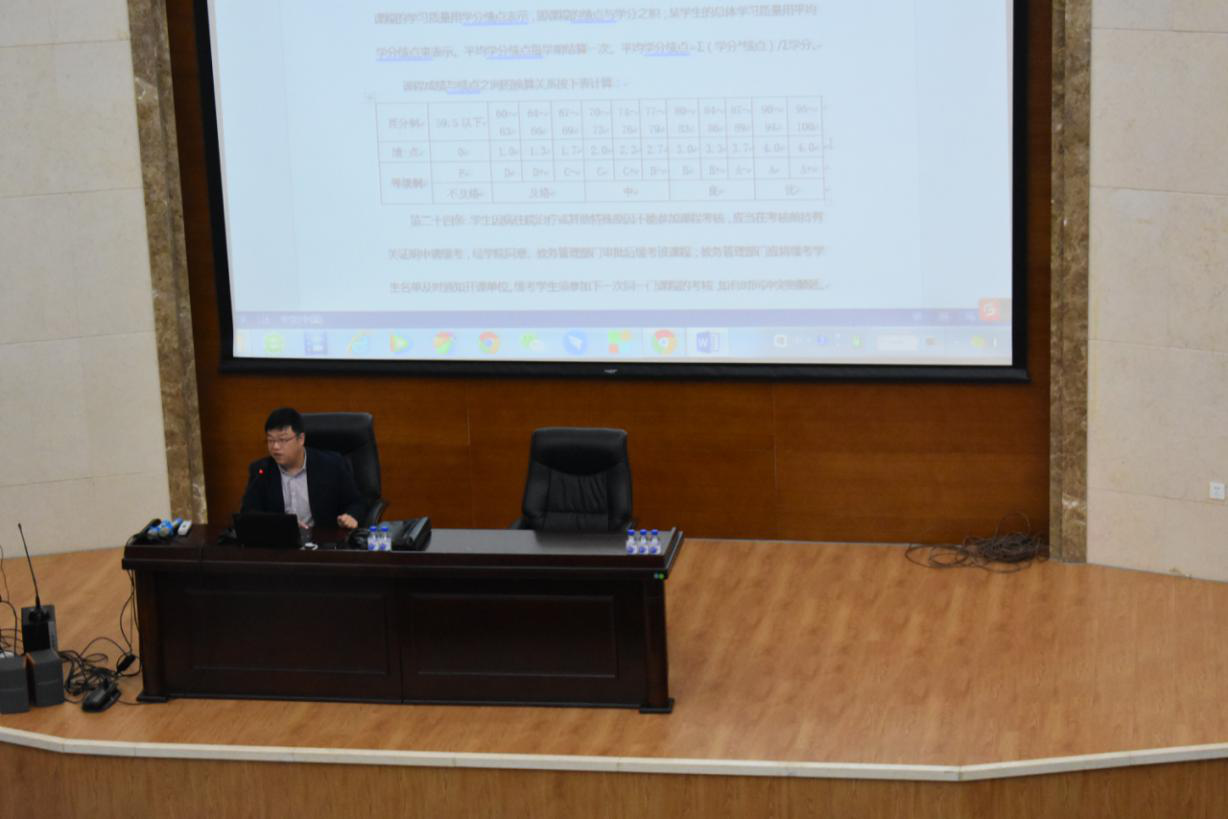 为了使2020级新生对选课及学分制有更好的了解,酒店偷拍 于10月9日的10:30在仿生报告厅举办了选课及学分制教育活动,由酒店偷拍 教务办主任矫承轩老师为同学们进行仔细的讲解。