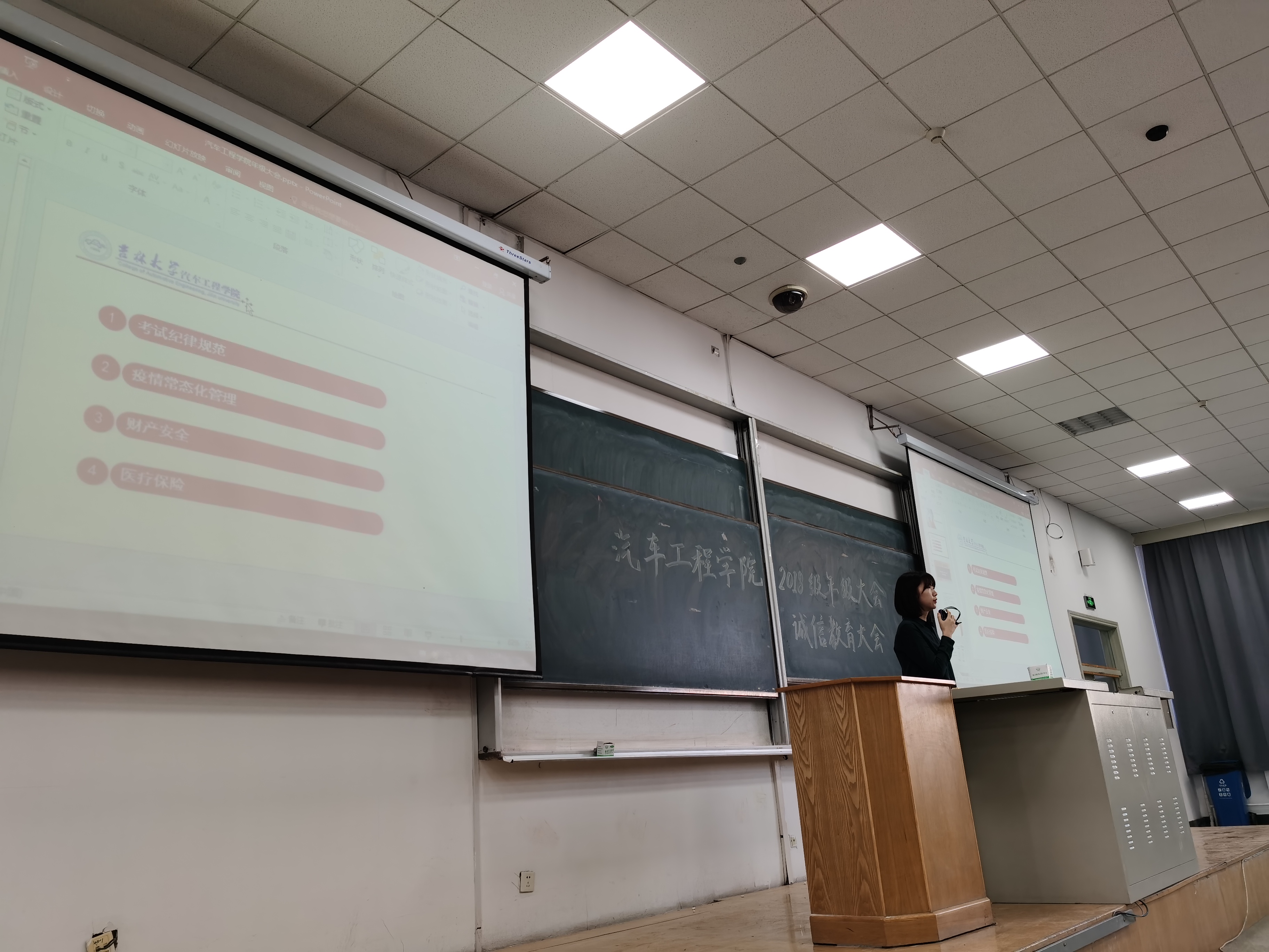 首先,张晓佳老师强调了考试的时间以及考场纪律,并指出了期末考试的重要性,告诫同学们都要严肃,认真地对待此次考试。随后,张老师针对最近频繁出现的诈骗现象,对同学们进行了网络安全教育,提醒同学们要保持警惕心理和自我安全意识,防止个人财产受到损害。最后,张老师告知同学们此次放假的时间和车队的工作安排,因疫情原因学生禁止留校,并对假期安全应注意的事项进行了说明。