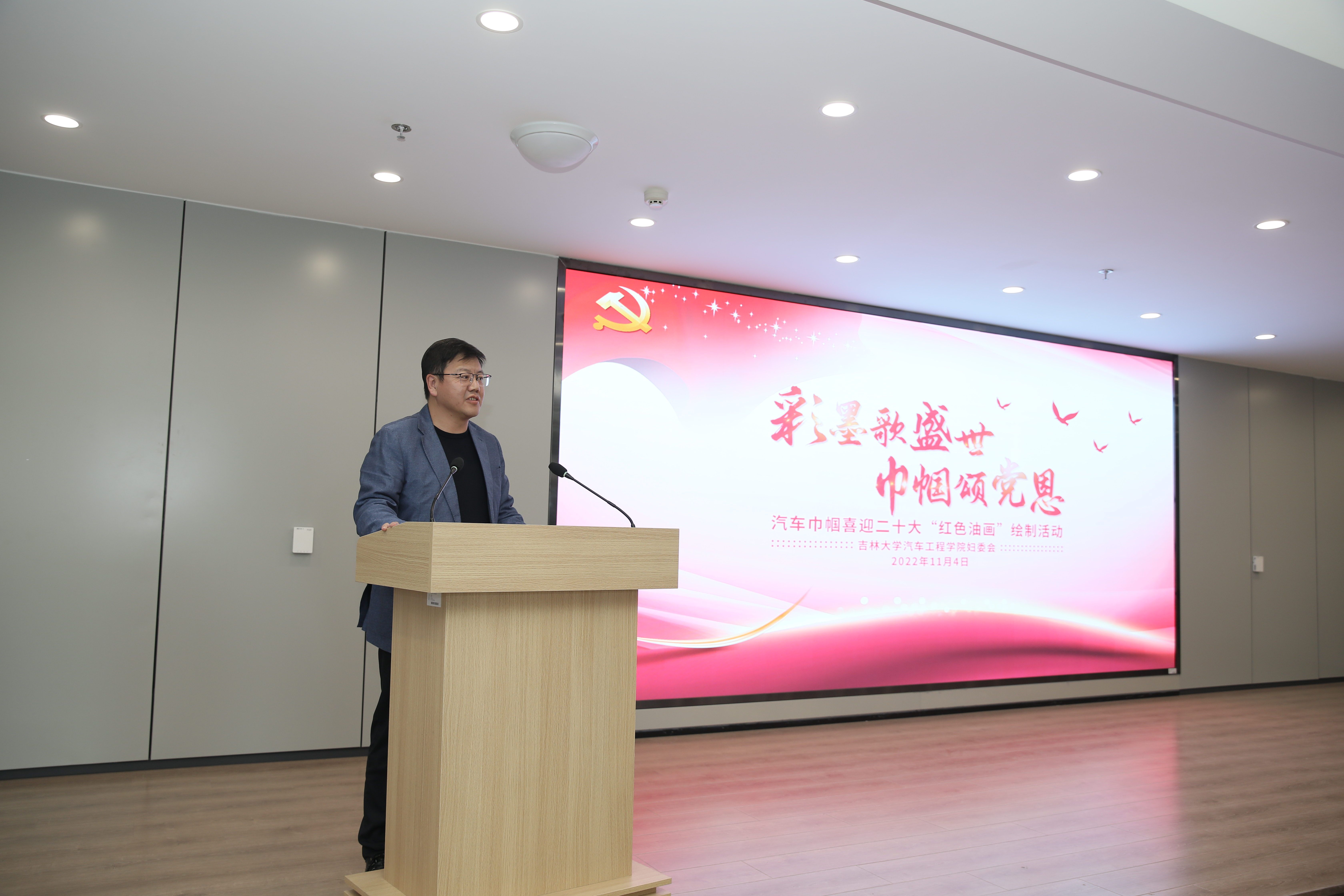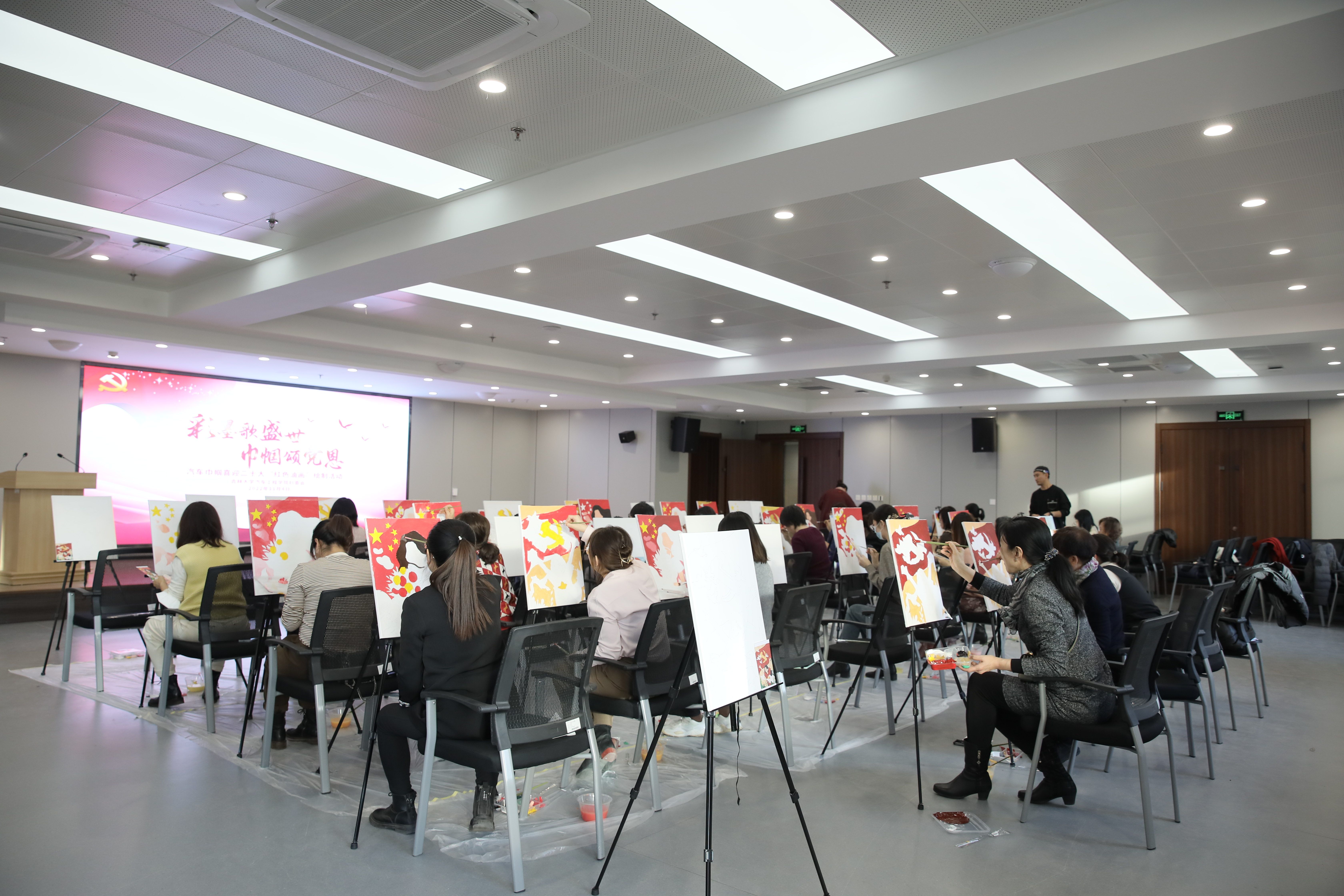 妇委会于11月4日举办了“彩墨歌盛世,巾帼颂党恩”——汽车巾帼喜迎二十大“红色油画”绘制活动,旨在以活动强化思想引领,展现巾帼文化自信,通过挥洒彩墨抒发巾帼爱国情,通过笔下佳作诠释巾帼向党心。学院党委书记黄忠华、副书记胡忠巍、副院长林海兰以及女教职工参加了此次活动。活动由学院副院长、妇委会主任林海兰主持。