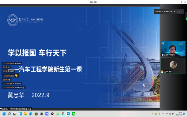 2022级新生第一课准时与大家见面。本次讲座由学院党委书记黄忠华以线上方式主讲,辅导员李娇老师组织新生观看。